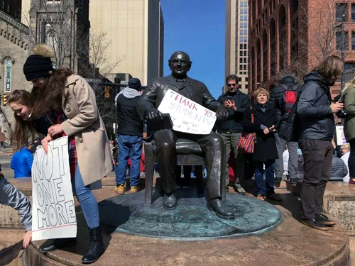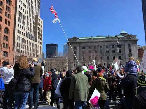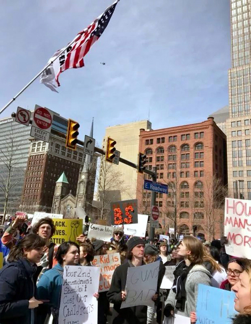成千上萬的父母,祖父母,學生,老師和其他人擠滿了公共廣場,舉牌表達他們的要求和意見。克利夫蘭市市長弗蘭克·杰克遜,凱霍加縣執行委員阿蒙德·巴迪什,學生組織者和佛州帕克蘭中學一名目擊槍擊案的學生母親參加了集會,並進行演講。