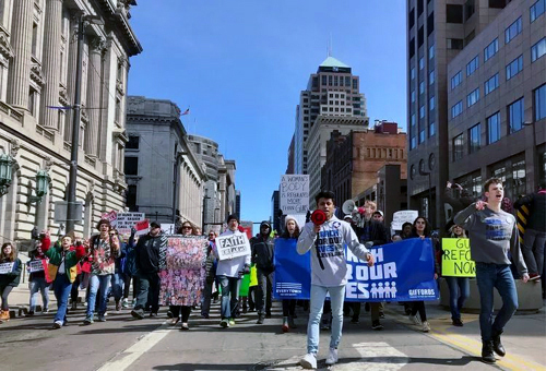 這次克利夫蘭市中心的集會遊行是由6個高中生領導組織的:
