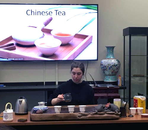 茶是中国人日常生活中的一项重要内容,其中也承载了中国人的文化品位和审美趣味。通过本次活动,大家对中国的茶有了更多了解,丰富的不仅是对茶叶本身的知识,更是文化方面的认知。活动结束之后,大家都表示中国的茶太好喝了,有人最喜欢西湖龙井,有人说要去买大红袍回家喝,教室里的茶香味也久久萦绕着,没有飘散。