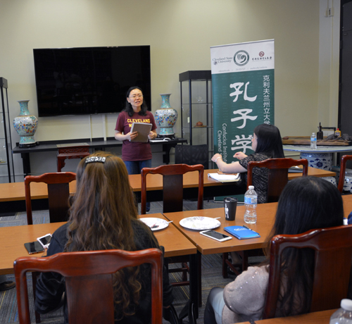 当地时间5月5日,克利夫兰州立大学孔子学院举行了本学年最后一次教师培训,本次培训是克利夫兰州立大学孔子学院“五步系列系统培训模式”中的最后一步,也是最高级阶段的培训,即培养教师综和反思、研究能力。本次培训邀请到肯塔基大学孔子学院修华静院长和欧柏林大学李恺教授,他们结合自己多年在中文教学和文化传播方面的经历,同参训教师分享了如何深刻理解文化、反思语言文化教学、成为中美文化交流桥梁、促进自我专业成长的体会。本次培训活动由核心教师/院长助理李惠文博士主持,美方院长徐岩、中方院长张旭红、阿克阿大学孔子学院中方院长刘绣华参加了培训活动。
