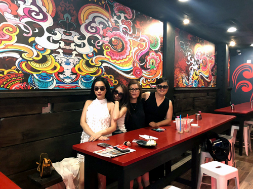 麵條店,三位富有美女加上我,談美談愛自己的熱情比今天室外炎熱的天氣更加強熱,如何讓自己慢慢變老,關鍵就是多愛自己.Jennifer説她媽媽80歲還很愛美,自己是全職母親,兒女都已經長大,享受幸福快樂的生活。