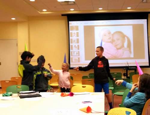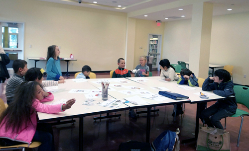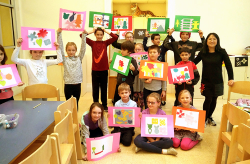 这是图书馆在春季汉语教学的基础上增加的一次“快乐汉语日”活动,所有参加了“快乐汉语”系列课程和中国画、剪纸工作坊学习的小朋友及家人、朋友都在邀请之列。活动中,我和孩子们一起共同回顾了“旅程”的全过程,孩子们之间、孩子和老师之间由陌生到熟悉,互相支持,共同进步的过程。孩子们用中文做了简单的自我介绍,一起唱《两只老虎》、《头发、眼睛、鼻子、嘴》,歌之舞之,快乐无比。围坐观看的家长、朋友们也十分兴奋,为孩子们的表现而骄傲。活动中展示的还有孩子们的中国画和剪纸作品,大家为孩子们初次接触中国文化能够自己独立完成的作品赞叹不已。