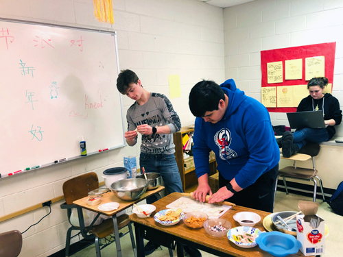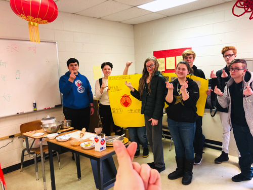 在派对前的教学中,先设定情景让学生们进入春节的氛围中。一周我们都在进行春节文化活动。通过影片让学生们了解春节的传统,又向学生介绍了八大菜系,特别是饺子的故事和文化传统。“包饺子,剪窗花,写春联,守岁,春晚,放鞭炮……”这些大洋彼岸的习俗和文化让学生非常感兴趣,此时再告诉他们中文课周末举办春节派对,学生们兴奋不已。