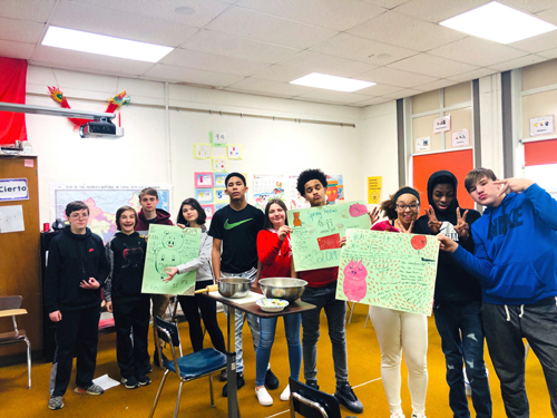 春节派对我带了很多中国小吃,准备好小红包。又把课桌变身小小展示台,从揉面,擀皮儿,包馅……展示了包饺子的全部过程。学生们迫不及待动手体验,学得有模有样,包好后放在锅里,充满期待的等待自己的“元宝饺子”。而中国的小吃和糖果完全征服了学生,他们不停地赞叹:王老师,这是什么?太好吃了!正值西方情人节,学生纷纷表示能不能带朋友一起品尝中国美食,并学着用红包装糖果,写吉祥话作为礼物,送给彼此。而我们也趁此复习了食物味道和表达喜好的对话。