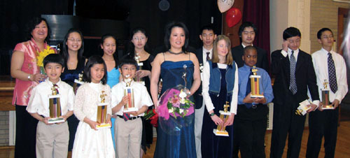 Michigan)的學生比賽得獎。我便要到那個學校去念書。母親說,怎麼能到那麼貴的中學去念,只有你能得到獎學金才可以去。那個學校舉行一年一度的國際鋼琴比賽,冠軍可獲得獎學金。所以我決定參加比賽。那年春天,大雪紛飛。我父親陪我搭飛機前往參加比賽。結果得了冠軍,就轉學去念,高三畢業獲得畢業的最高榮譽獎,在畢業典禮上擔任鋼琴演奏。