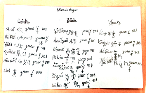 在學習“食品飲料”等主題時,我讓學生利用“碎片”時間製作自己理想的菜單。由於是“碎片”時間,沒有統一的時間要求,因此,學生做得非常認眞細緻,眞的是表達了自己美好的“店主”願望。