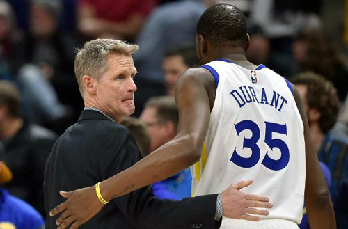 今年的勇士隊卻狀况不佳,雖然他們在西部決賽4:0輕鬆擊退波特蘭開拓者隊進入總決賽,但是隊內傷病纍纍,尤其是主將Kevin Durant遲遲不能回歸,降低了球隊的整體實力。而猛龍隊的陣容明顯針對勇士隊,常規賽就取得2:0的戰績。季後賽猛龍隊越戰越勇,而勇士隊卻有點獨木難支的感覺。總決賽第三場,勇士隊靈魂人物Stephen Curry一人獨得47分, 季後賽生涯最高,其他兩項也是全隊最高,但球隊輸了,有人開玩笑説,此乃“里程悲”也。