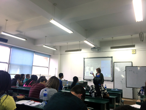 不同汉语水平的孩子与汉语综合老师和听说教师在课堂上积极互动,尽管每天很辛苦,但是非常有收获。语言课之外,他们还挑战了剪纸,折纸的手工活动,一把小小的剪刀,一张张艳丽的彩纸,在他们的手中,不仅仅变成了老师指定的蝴蝶,熊猫,心形,还变成了抽象的树根,房子,小狗和各式各样的创意作品。在云南师范大学,当地的老师还特别安排了一场云南少数民族概况的讲座。通过学习,同学们了解到中国少数民族的恋爱方式和不同的生活习俗,如苗族的“游方”,瑶族的“唱风流”,布依族的“浪哨”和藏族的“唱山歌”等。个个都被中国少数民族多样化的表达爱情的方式吸引的口瞪目呆,热烈讨论。甚至当场有几个活跃的孩子用英文唱起歌来,仿佛他们置身在少数民族村抒发着心底的热情。