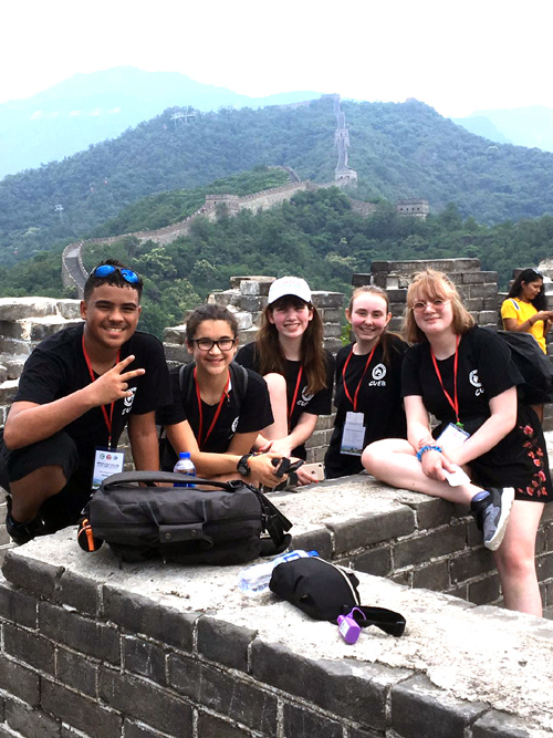 6月18日入住北京营地后,标志着我们的夏令营活动正式开始,同时我们团组也受到了北京合作方首都经济贸易大学的热情接待。伴随着初到中国的兴奋,孩子们在历经二十多小时没好好休息的情况下,于当天上午仍然兴致勃勃地参观了孔子学院总部。他们在中国文化体验中心感受到了中国传统文化的多样魅力。在“中国民族服饰”、“中国乐器”、“中国书法”、“中国地方戏曲”展台前,学员们兴奋不已,有的兴致勃勃地试穿京剧戏服和中国民族服饰拍照留念,有的体验敲击编钟和弹奏古筝。除此之外,学员们还利用交互设备感受中国书法和国画艺术的博大精深,并现场创作了自己的作品。如果说上午的参观给孩子们集中展示了中国文化的精髓,那么下午的长城游览让他们切切实实体会到了中国文化的博大精深和中华民族坚韧顽强、不屈不挠的意志。在攀爬阶梯时,有几个美国孩子抑或是平日里缺乏锻炼,抑或是天气酷暑难耐,爬到半途时无法坚持想要放弃。此时唯有轻轻叹,一叹阶梯耸入天,二叹薄阳逼香汗,三叹时日尚早,春风不度山海关,四叹体力难支,短吁长喘。作为带队老师,我们于是乎使出浑身解数好说歹劝,总算带着这些孩子们成功登顶。在登顶那一刻,孩子们连声叹:“太棒了,太美了,太值得了。”看着孩子们洋溢的笑脸,一股自豪感在我心里油然而生,是啊,万里长城,她是中华民族的根,她是中华民族的魂,中华民族悠久的历史铸造了长城,而长城又是历史不朽的见证!我也欣赏孩子们的韧性和纯真,衷心地为他们有机会感受中华民族的悠久历史而高兴。