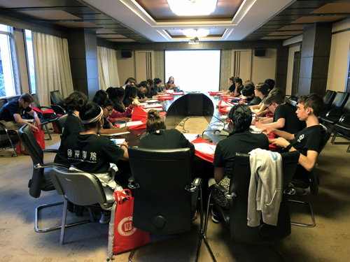 在跟孩子们朝夕相处的日子里,带队老师看到了孩子们从刚刚离开父母的兴奋,到初在营地的陌生无助,慢慢到他们适应了营地的一切,看到他们最终在夏令营日子中的收获,孩子们在历经考验后还能微笑面对一切,收获友谊,他们的这段异域生活可能是他们少年时代不可磨灭的记忆。其实对于第一次作为带队老师的我来说何尝不是一次巨大的考验?今年夏令营工作是由孔子学院中方院长张旭红及汉办教师王文君、郭宇飞共同负责。今年三月份我们就着手前期筹备工作,从选拔营员,面试,准备各种文件资料,再到跟中方合作单位沟通协调行程安排,机票预订,签证办理,T恤衫制作,行前宣讲会,足足耗时三个多月才把繁琐的前期工作全部准备就绪。本想着万事具备,只欠东风,我们只要静静等待着出发的日子就好。事实证明我太天真了,真正的考验还在后面,且来得猝不及防。