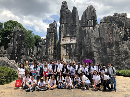 如果说北京是座历史悠久,文化深厚的古城,那鲜花常年不谢,草木四季长青的“春城”昆明带给大家的是别样的少数民族特色风情。在昆明民族村村寨里,孩子们了解了云南各民族的建筑风格、民族服饰、民族风俗,民族歌舞、大象表演,品尝民族风味小吃,购买民族工艺品。当其中一个叫安娜的孩子穿着唯美的民族服饰翩翩起舞时,周围的小伙伴都惊呆了,忍不住地夸赞:“安娜,你太美了,这件衣服就是为你量身定做的”。尽管这件精致的衣服价格不菲,但是安娜还是买下了,并说:“这样精致的服装再贵都值。”次日昆明著名景点之一的石林又让孩子们感叹了一把大自然的鬼斧神工。整个景区由密集的石峰组成,有如一片石盆地。这里的石林直立突兀,线条顺畅,并呈淡淡的青灰色,最高大的独立岩柱高度超过40米。其中有“莲花峰”、“剑峰池”、“千钧一发”、“极狭通人”、“象距石台”、“幽兰深谷”、“凤凰梳翅”等典型景点,最著名的当数龙云题词“石林”之处的“石林胜境”,而“望峰亭”为欣赏“林海”的最佳处。人们行走在峰林间,不几步便被石峰挡道,曲折迂回之后,又是另一种天地。孩子们边走边感叹,“都说中国地大物博,今天总算是见识到了。”