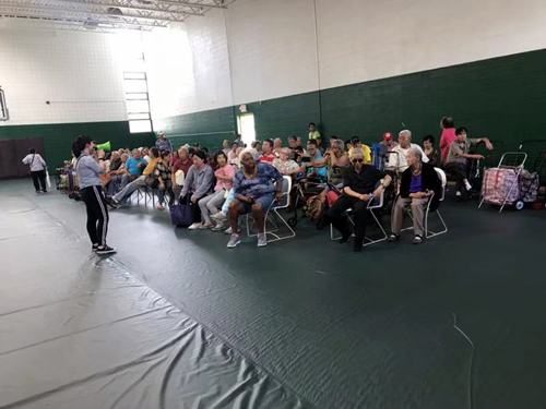 克利夫蘭華人區發放點設在32街社區運動中心,這個籃球館都坐滿了來拿食物的民衆,大家語言不同,不那么容易統一管理。市政府公共關係部華人Chia女士,這個項目是她向政府申請而來。