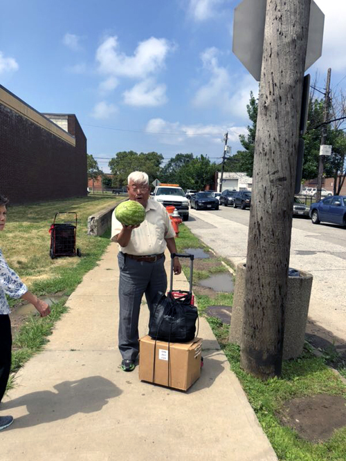 8月8日下午伊利華報記者到了現場,看到煕煕攘攘的人群,大家滿懷喜悅,拿到了豐富的菜。當日有一位警察對記者説,請記者吿訴華人:大家不要擁擠,每個人都可以拿得到菜。