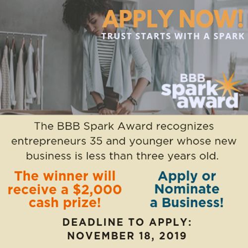 The BBB Spark Award is bestowed upon entrepreneurs age 35 and