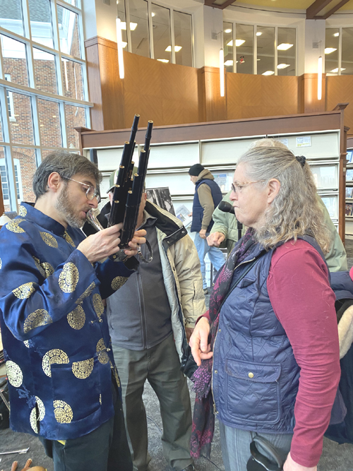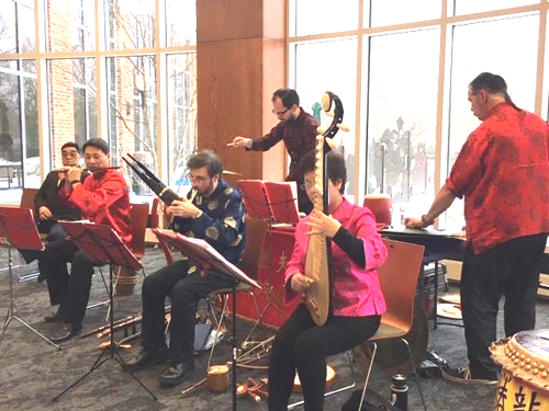 图书馆庆祝中国新年,今年已经是第九年克利夫兰民族乐团到Hudson图书馆举办庆祝新年活动,与以往不同的是今年的主题是庆祝俄亥俄州东北部华人社区成立150周年,他们展现了克利夫兰中国城的百年历史。这次活动吸引近200位听众,Hudson著名高中WRA来了40位学生观摩,另外这场演出还特别邀请一位热爱中华文化50年,有着华裔血液的Mark