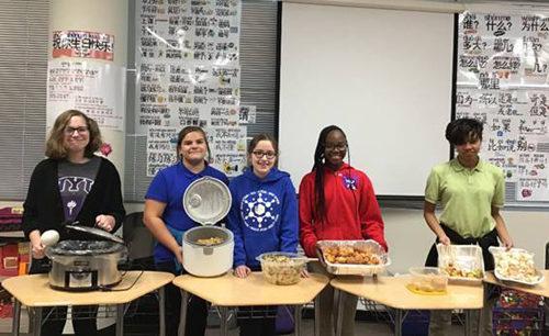 The groups I was in for the Chinese New Year performance, which includes Taiji, Double Fan, Fashion Show, and Public Square Dance, practiced the new dances from September to January during our recess period to prepare for the Chinese New Year performance and practiced our older dances from the previous year in preparation for the Cleveland State University competition. Along with Chinese culture, all students in eighth grade had to cook Chinese food including酸甜鸡 (sweet and sour chicken), 饺子 (dumplings), 春卷 (spring rolls), and more, this gave us a real-life experience of Chinese culture other than Chinese New Year.