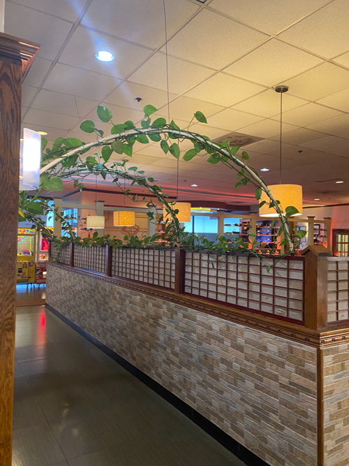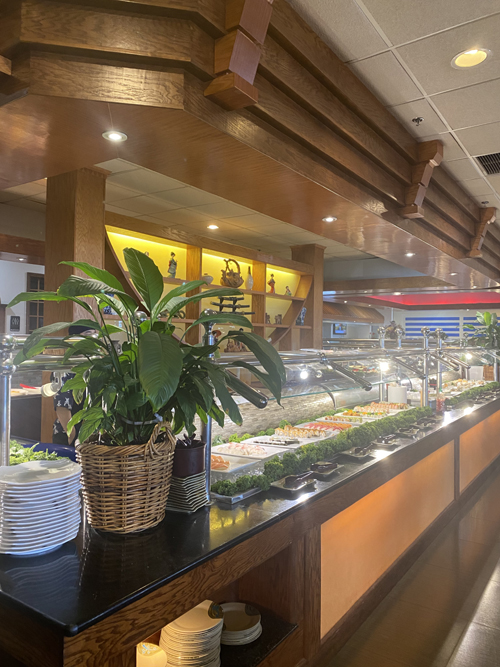 綜合性飯店,日本壽司,中國菜肴,素食,火鍋和奶茶。擴建4000英尺,裝修一新,多功能的餐廳,不同顔色裝修的每一間溫馨的小屋,合適小家庭和大家庭聚餐,有富有情調的奶茶屋,孩子們玩的遊戲區早上星期一到星期五$10.99,星期六早上$12.99, 晩歺星期一到星期六$19.99星期日全天$19.99