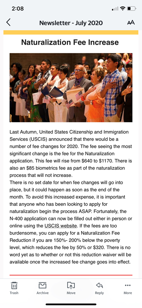 is the fee for the Naturalization application. This fee will rise