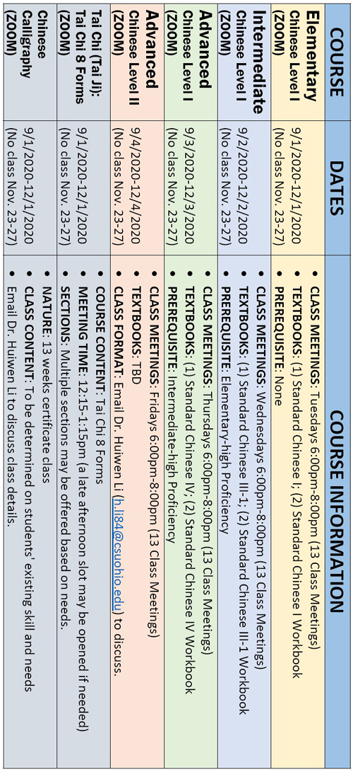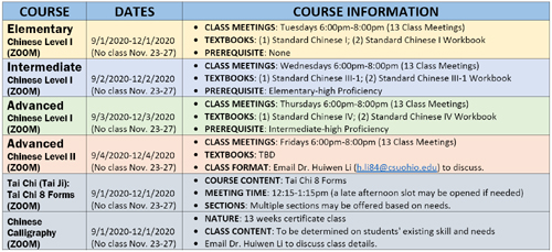 2020年秋季在線學習中國語言即中國文化課程