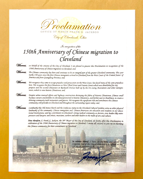 City of Cleveland honors 150th Anniversary of Chinese Immigration to Cleveland