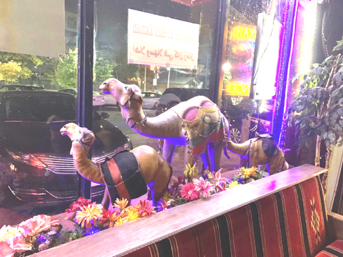 在聚會中,浦瑛姐介紹我認識了Giahoa Ryan。她曾是越南小姐,雖已過七旬,丰采依然。現在她代表亞裔社區,爲克利夫蘭市長Jackson工作。歡舞、美食、善友!快樂的一晩!謝謝浦瑛姐的邀請!在臨出餐廳的時候,浦瑛姐指給我窗前的三只駱駝,這是阿拉伯的吉祥物!駱駝在阿拉伯文化中有美麗聖潔的傳説。這三只駱駝,製作得栩栩如生,眼閃柔光。也許Anthony Bourdan來過Kan Zaman,我這晩就坐過他坐過的桌子。一起生活幾年的朋友回中國,心里總有點挂念難受,自己在自娛自樂度過美好的時光。