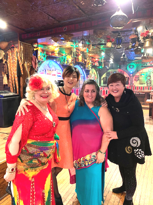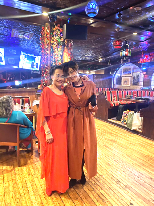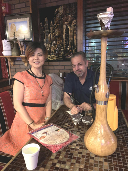 我們一起到了一家在克利夫蘭downtown的中東餐廳~Kan Zaman。一進門,中東特有的音樂,氣息,裝飾的色彩就迷幻了我。餐廳中間是舞池,四壁是以中東各國的小國旗和民族服裝作爲裝飾,屋頂用各式阿拉伯風格的油燈作爲點綴。餐廳老闆Wael介紹説他是1997年從Jordan到美國。這家餐廳的招牌菜是Shish Tawook和Shish Kafta Beef, 類似我們新疆的烤鷄串,烤牛串。在downtown 工作的客人下班後到這里吸水煙(Argelah)放鬆一下, $15一位。浦瑛姐和我品嚐這家餐廳的甜點Hariss和Baklava。老闆好人,用的都是品質高的食料,可謂價廉物美。這晩的活動是Lion Arts組織的籌款活動。Cindy David是Lion的創始人,以舞蹈爲紐帶,幫助世界各國的受性侵的人們找到自尊。我問受幫助的都是女性嗎。她的回答令我我驚訝,男性受性侵的而尋求幫助的比女性多。因爲疫情,當晩來的人並不多。但是,Cindy和她的女伴們的Belly Casandra舞,在浪漫的音樂下,將氣氛挑逗得很濃烈。我自問阿拉伯國家那么保守的國家,卻盛行這么撩人的舞蹈呢,讓人異想菲菲,欲罷不能。又想了想,其實在美國有自由,而在古老的國家和文化中,才有生活,好吃好玩好樂!浦瑛姐不禁下舞池學舞了。