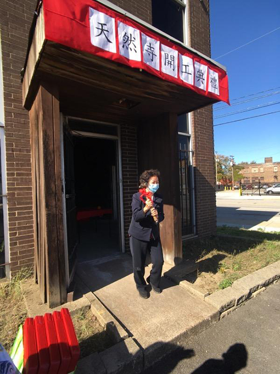 點香供佛後,榮點傳師拿着榔頭敲響天然寺新的里程碑,從內向外直到大門外,榮點傳師吿訴大家:克里芙蘭是美國的心臟,我們有福了天然寺建在克里芙蘭,她還表示:天上人間,天然寺在眾人善信的集資,努力,期望中,在克里夫蘭市,建立起一個平安,清淨,和諧,喜樂的人間家園、願所有有福的人共同經營,共同分享,共同承擔,創造個人最高的身心靈中的最高價値,並在我們手中建立起世代聖賢所期望的完美的使命-