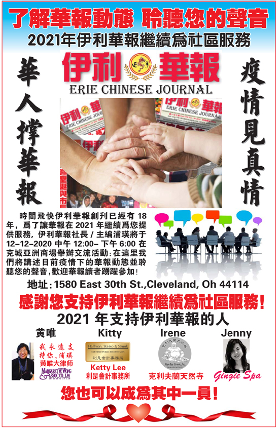 St.,Cleveland, Oh 44114感謝您支持伊利華報繼續爲社區服務! |