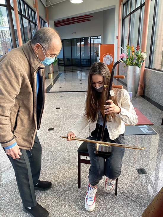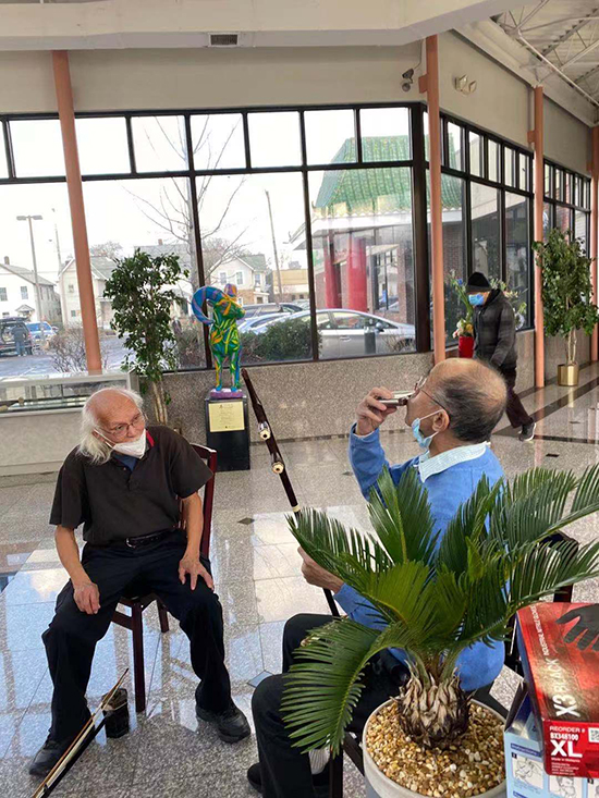 12月12日中午之前,浦瑛早早地就在亞洲商場的走廊里佈置好了攤位,儘管是化緣,可現場也裝點的像開party,鮮花氣球音樂一樣不少,還請來了克城才子張小倫和能演奏多種樂器的黎華趙先生到現場演奏助興,悠揚的中國民樂曲給疫情下寒冷的冬天帶來一絲暖意。