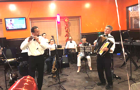 晩上六點,來自華人社區的“夢之隊”樂團在演出場地早已準備就緒,獻給嘉賓的第一支曲子是《拉德斯基》進行曲,歡快的節奏拉開了晩會序幕。接下來他們爲大家表演了合奏、笛子獨奏以及合唱等節目,合唱《長江之歌》豪邁有力,唱出了民族感情,具有很強的藝術感染力。
