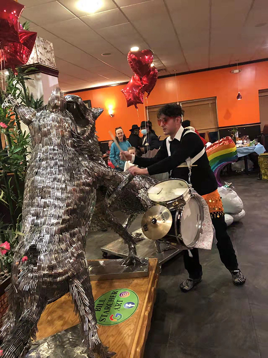 隨後有少林武術表演、中國傳統絶活變臉術、非洲風格歌舞等紛紛呈現給到場嘉賓,大家一邊享用美食一邊欣賞歌舞表演。餐廳另外一側的顧客也被吸引過來,自願加入表演助興。節目的最後,熱烈的演奏把嘉賓情不自禁地帶上“舞臺”,隨着樂曲盡情舞蹈,興緻高昂,歡樂無比。