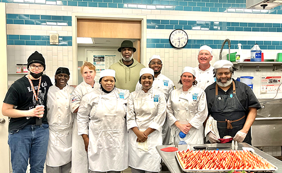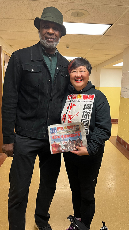 我在Tri-C Hospitality Management Center Students社區學校看到他親自與學生廚師交流做菜,因爲缺食材,他自己親自去超市購物,我也有機會跟着他一起在超市shopping.在學校的大師傅吿訴我:Charles Oakley是他的好朋友,他們是發小,Charles Oakley關心愛護朋友,有機會就幫助大家。當晩Charles Oakley邀請我去參加了他的晩會,那晩宴就是他的發小Tri-C大師傅帶領的烹飪專業的學生做的美食,Jenny和我高興快樂的就像回到18歲靑春時代。