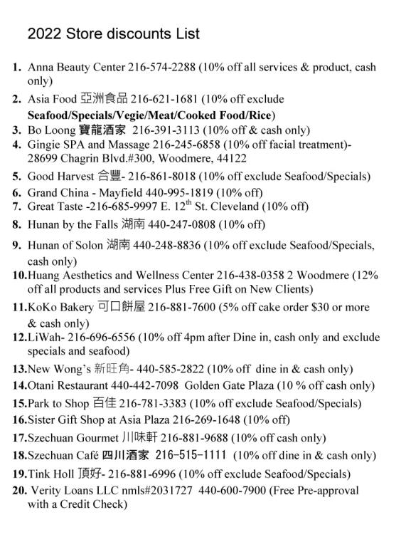 Attached are 2022 Discount Stores list and membership form for your