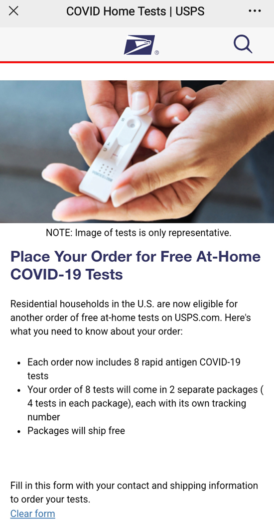 郵局發放新一輪家庭測試盒,每個家庭可領取2盒(共8個)可通過以下鏈接注冊領取: