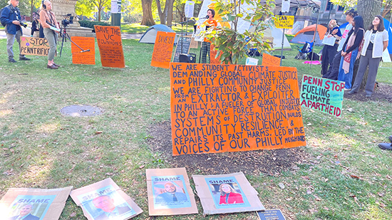 那日在學校行政主樓前,富蘭克林銅像旁邊,有學生在演講示威抗議,圍觀者衆。我在賓大數年,不曾遇到過學生抗議場景,更何况是如此聲勢浩大的。在常春藤校園里聽到學生領袖慷慨激昂的演説,看到晨陽下隨風飄舞的手寫標語與橫幅,與賓大莘莘學子如此的“不期而遇”,浦瑛姐這個老媒體人也不由地深深感嘆這一份千里難尋的“可遇不可求”!