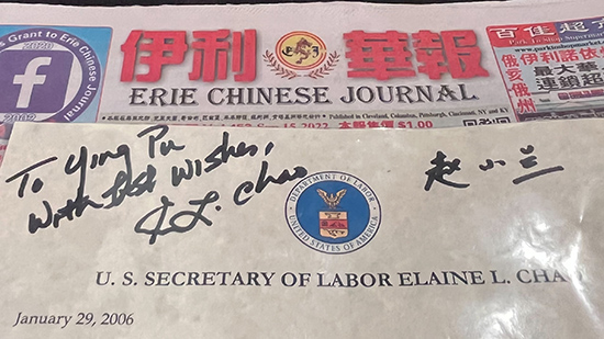 Club晩上爲時任美國交通部部長趙小蘭舉辦活動,這個活動我與趙小蘭的助理準備很久,因爲她吿訴我是趙部長親自安排要到俄州克利夫蘭來與華人面對面交流,也是因爲疫情活動取消,趙小蘭秘書説:趙部長説我忙了這么久,就給我寄來10套趙小蘭部長父母寫的書,表示感謝。