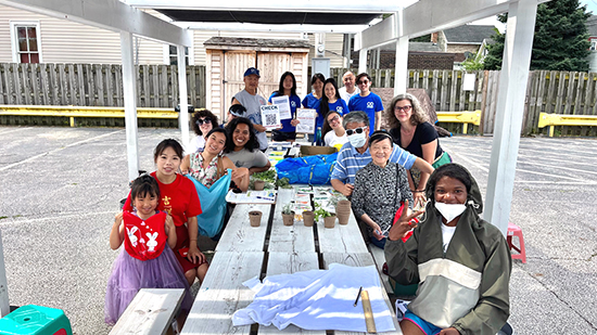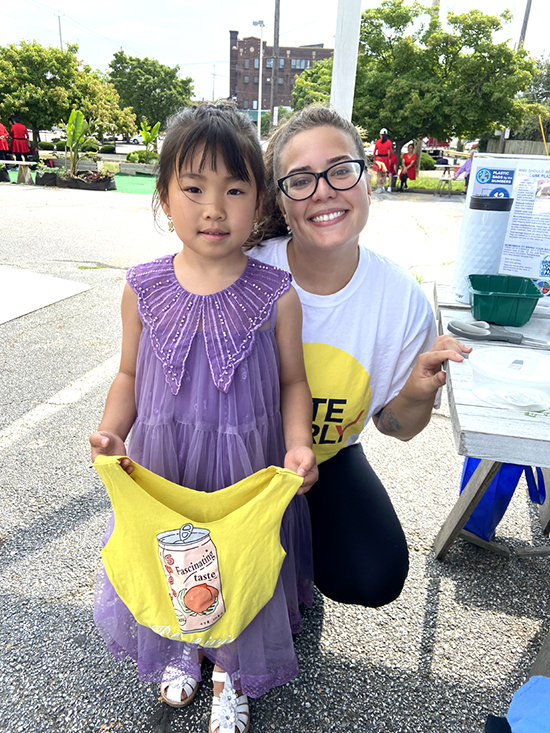 Ave夏日廣場舉辦的普及選舉現場,當日活動內容亞洲城可持續發展倡議。促進亞洲城居民更多的使用可重複使用的購物袋。照片是環保敎育普及和敎居民怎么把不用的T恤衫改成可重複使用的購物袋。我們也幫助居民瞭解8月8號的特殊選舉內容。