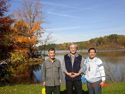 Picture 2: 黃父(右)、黃叔(左)和齊麟教授(中)出去賞楓、散散心