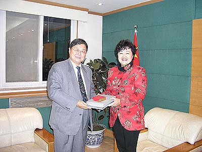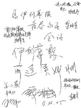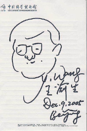 中國科技館館長王渝生先生是一位令人尊敬的長者。在和他短短一個多小時的會見里,我感到他即親切友好,又知識淵博,當我談到和科技館朋友有緣分時,他感謝華報給藝術家在克城的關心,他要藝術家們好好照顧我在北京的吃住行。當我們談到宗敎時,他開懷地説:科學是自然界里所發生的事,如果科學家不能解決的問題就只有請哲學家來回答,如果哲學家也回答不上,那只能請神學家説話了。他還認爲,科學和宗敎在最初發源的時候有着密不可分的關係,宗敎里面也有科學知識。科學和宗敎,信仰不同,相互尊重,可以是朋友。在交談完後,他爲華報留下了他的祝賀和他只用35秒畫的他的自畫像。 |