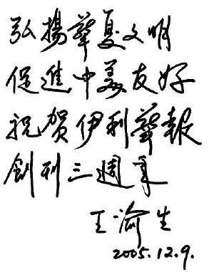 時間如梭,《伊利華報》走過了三年的里程,這三年雖有艱辛,但也輝煌。雖然我們早已回到國內,遠隔萬里,但《伊利華報》一直在我心中關注,保持着友好的聯繫。三年間,報紙從一個稚童走向成熟,從每月的一期增加到兩期;從克城走向各州更大的範圍。在國內,每當得到一份報《伊利華報》,心情總按捺不住急于尋找我熟悉的面孔,想瞭解朋友近期的工作、生活,願朋友健康、好運。《伊利華報》用自己的眞誠凝聚了海外赤子,用自己的熱情搭起了華人朋友説話交流的平台。用自己的奉獻給華人朋友送去幫助和溫暖。