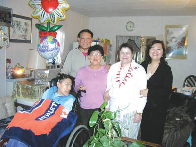 我帶上了祝賀氣球和禮物和凱文一起去見了我的忠實讀者(他們的故事在P27),一對十分慈祥和善良的老人,我發現在他們桌子上有去年到今年的華報,我的心頭一熱,華報還得再送匹兹報。