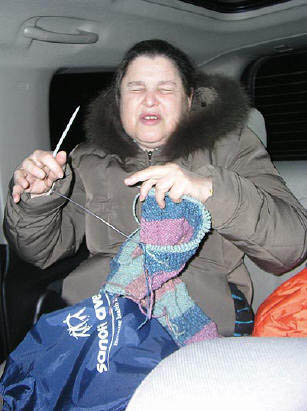 凱文在車上她還在打毛衣,因爲她從不浪費時間
