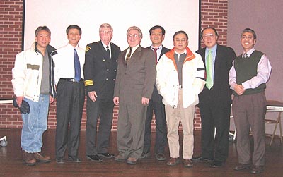 (本報訊)2008年3月8日下午,Solon高中(中文學校)小禮堂里,由克里夫蘭當代中文學校主辦,並在克城美華協會的協辦下,召開了華人社區會議,組辦者請來了Solon市警察局長Wayne E. Godzich和探長Christopher P. Viland與華人見面,儘管這一天整個克里夫蘭被大雪覆蓋着,但還是有四五十位人士前來參與。主講人Viland先生用了一個小時的時間爲大家介紹了一般性的法律知識,如訴訟程序法、家庭暴力、體罰孩子、文化差異等,也談到了Solon市警察局在去年11月29日發生的“陳建偉案”中的責任等話題。之後是聽衆提問,見面會在延續了45分鐘後,于4點45分結束。
