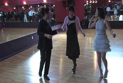 舞到高潮,專業的流行舞老師帶着大家跳集體舞,幾乎所有的人都站起來跟着學,音樂一響,大家左移右移,前進後退,到各自發揮。只聽到笑聲,腳步聲,音樂聲,滿堂歡歌笑語。