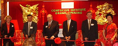Institute)的合作夥伴相聚在克城麗華酒家,爲[孔子學院] 舉辦了隆重的揭牌剪綵儀式,