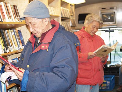 眞誠服務考慮周全。華人常靑公寓居住的年逾古稀的人中,絶大多數是單身的老婦,都患有不同程度的骨質疏鬆和關節炎疾病,腿腳不靈,走路不便,乘車怕摔,圖書館領導出于慈善愛心,每四周一次,開一輛大型流動圖書車到老年公寓來,供耆老挑選借閲圖書録像帶、磁盤等,還贈送給每人印有圖書車標誌的帆布袋供借還圖書裝用。此舉措,爲老人送來了精神食糧,使我們消除了孤獨感,解除了寂寞,增添了溫馨。