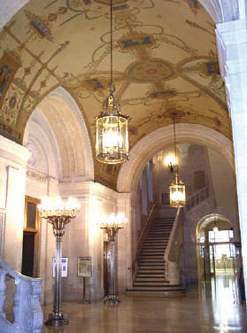 ,克里夫蘭也曾添列全美十大城市之一。惜近年經濟不振,人口流失,風光不再。但圖書館建築設計仍然留下了當年的輝煌,過去的大度,往年的豪華,昔年的氣派。