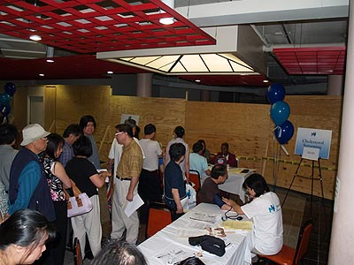 美健醫務所在亞洲商場舉辦免費檢查,內容有血壓、血糖、膽固醇和聽力等,經理COOPER親臨現場組織領導。兪昌祚醫生解答有關保健知識,參加者還有醫生護士等10人,廣大社區居民對這項便民獻愛心慈善事,十分感激,非常滿意。