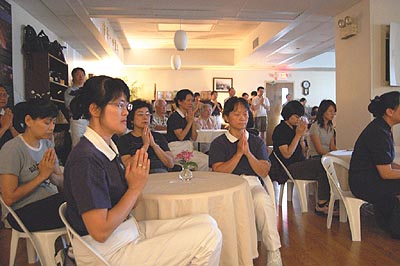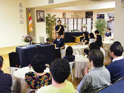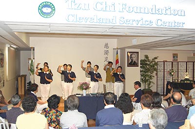 師姐們表演「愛與關懷」手語,與會來賓也輕聲吟唱「一個乾淨的地球」,希望傳達愛護我們的地球。上人說﹕齋是素食、戒是規矩,清淨的生活就從齋戒開始。用午齋時每個素食飯盒上皆有一張「響應齋戒」祈福發願簽名卡,敬邀大家用虔誠心念持齋守戒。不少人塡了齋戒卡,一位太太很歡喜的說她每星期至少有兩天要素食;有位林伯伯常吃肉食,他看到卡上有一星期、一個月、一年,他猶豫了一下,輕聲問說有初一、十五的嗎?其實就算齋戒一天,只要能結合大家的力量,就能回歸和諧的生態,這就是善的共業。曹小姐第一次進會所,會所的溫暖及親切讓她印象深刻,今天的活動讓她十分感動,並開心表示要加入志工的行列。活動漸近尾聲,許多大德來賓發願支持,畢竟天地生養萬物,人類依萬物而生存,本當感恩地球供應資源,我們生命才得以延續。 |
