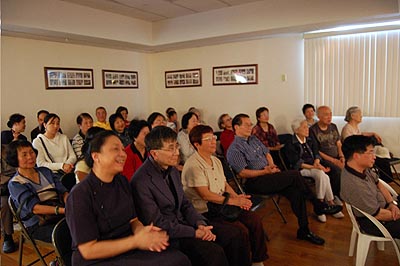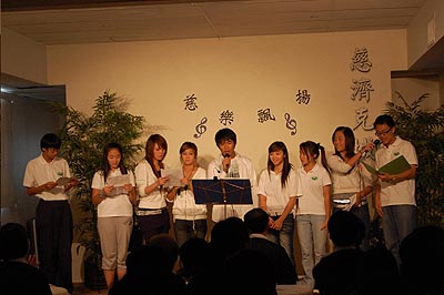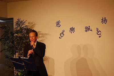最後師姑師伯們以「大愛讓世界亮起來」的大合唱為今天的音樂會畫下句點。音樂會後,陳福明師伯也和大家分享,他去四川參與賑災的心得,他提到說,在賑災現場,慈濟的師姑師伯用慈濟歌及手語膚慰當地的災民,充分感受到有慈濟歌的地方就有溫暖。